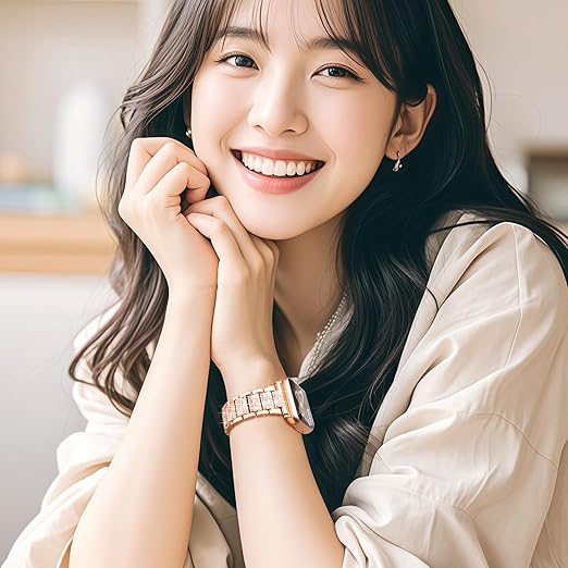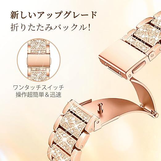 [SIBOYL] クラシック互換うアップルウォッチ バンドキラキラ42mm(Series 11 10) 41mm 40mm 38mm、ワンタッチ着脱、おしゃれ絶妙対応Apple Watch ベルト、かわいいのあっふウォッチバンド レディース、対応Appleウォッチ ベルト11 10 Se 9 8 7 6 5 4 3 2 1-ローズゴールド a