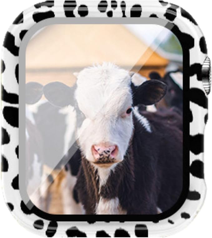 アムキラ アップルウォッチ カバー アニマル ケース カバー レオパード ダルメシアン 牛 豹柄 ヒョウ柄 ゼブラ (カウ, 45mm) a