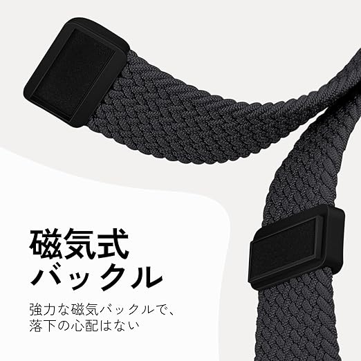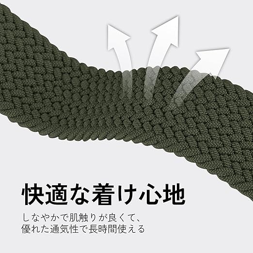 【対応機種・サイズ】アップルウォッチ 編み込み バンド。Apple Watch Ultra2 Ultra Series 10 9 8 7 6 SE 5 4 3 2 1 全機種に対応できます。伸縮性である設計で、115mm—228mmの手首サイズに適しています。長さは無段階で自由に調整可能で、どんな手首でもフィットできます。男女兼用のApple Watch バンドです。