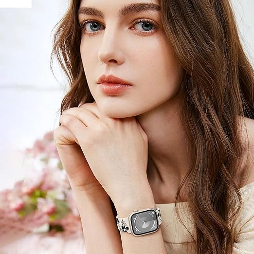 【最新の花彫刻デザイン】このアップルウォッチ バンドは、ノウゼンカズラの模様を彫刻したデザインで、日本のファッシ