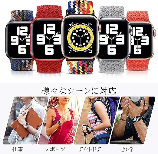 コンパチブル apple watch バンド iwatch バンド 編組バンド apple watch Ultra3/Ultra2/Ultra/10/9/8/7/6/5/4/3/2/1/SEに対応 38mm/40mm/41mm 42mm/44mm/45mm/46mm/49mm 着け心地 アップルウォッチ用バンド シリコン糸&ABSアダプター b