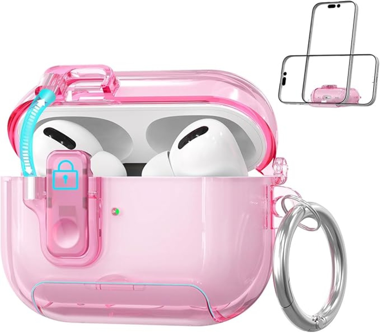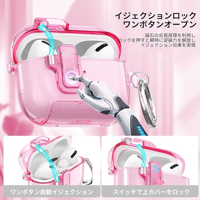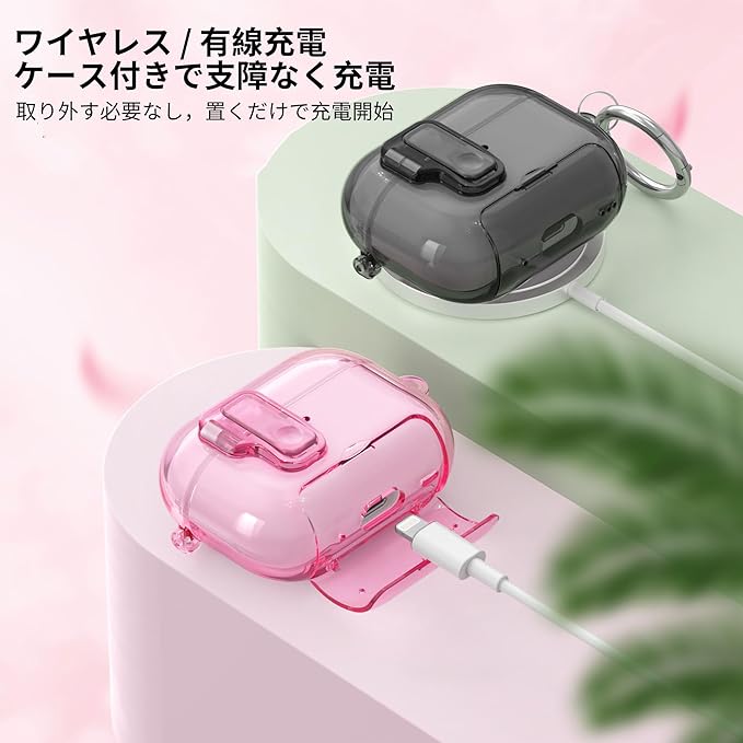 【2025年度 先行発売】YXHH新登場 AirPods Pro 3 用 ケース 自動スナップスイッチ付き 全面保護カバーTPU 耐衝撃 収納 軽量 撥水 防塵 キズ防止 充電対応 紛失防止 旅行 カラビナ付き AirPods Pro 第3世代 対応 保護ケース(透粉) a