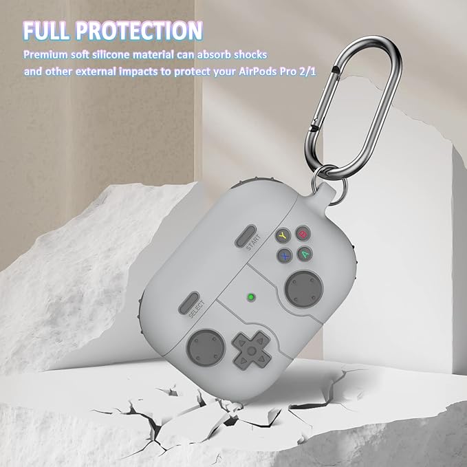 R-fun AirPods Pro 第 2/第 1 世代ケースカバー クリーナーキット付き クラシックハンドヘルドゲームコンソールデザインケース ソフトスキンシリコン保護 Apple AirPods Pro ケース 2023/2022/2019 用 - ライトグレー a