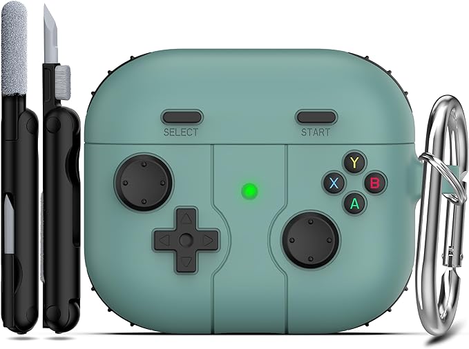 RFUNGUANGO AirPods 第 3 世代ケースカバー キーチェーン付き ゲームプレーヤーデザイン 子供 ティーンエイジャー 女性 男性用 AirPods 第 3 世代充電ケース用ソフトシリコンケース グリーン a