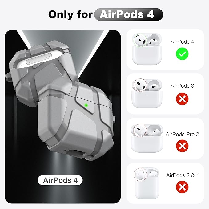 【対応機種】:このケースはApple AirPods 第4世代 (2024)/AirPods 4 アクティブノイズキャンセリング搭載 (2024) (USB-C) 専用です。(AirPods 1/2/3 Pro/Pro2には対応しておりません。) 注意:AirPods 第