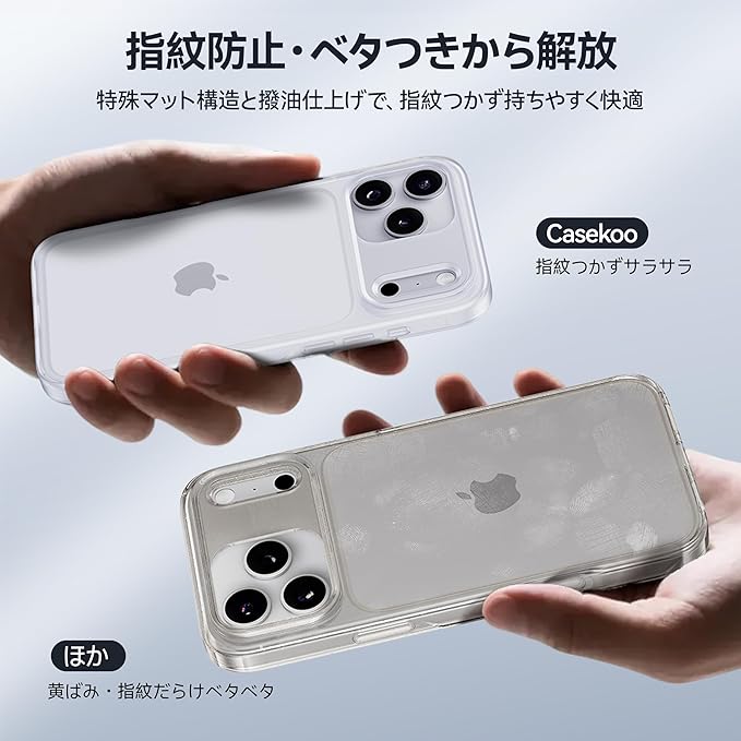 【米軍MIL規格・指紋防止】CASEKOO iPhone 17 Pro 用 ケース 耐衝撃 滑り止め 指紋防止 米軍MIL規格 マット仕上げ ストラップホール付き 黄変防止 耐久性 カバー ワイヤレス充電対応 いphone17pro 用ケース 6.3 インチ(マットクリア)