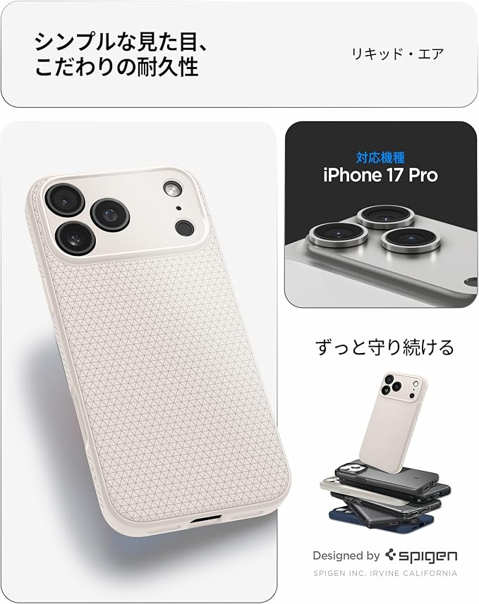 Spigen 【創業18年の技術力】 iPhone 17 Pro ケース 米軍MIL規格 ストラップホール マット TPU 耐衝撃 リキッド・エア (ナチュラル・チタニウム) ACS09945