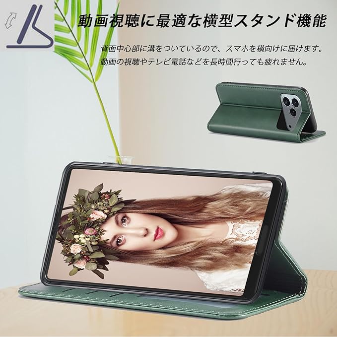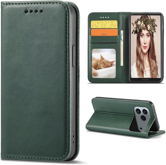 iPhone17 Pro ケース 手帳型 アイフォン17プロ カバー 携帯ケース あいふぉん手帳型 スマホケース 携帯カバー PUレザー ストラップホール付き カード収納 財布型 内蔵マグネット式 スタンド機能 薄型 防水 耐衝撃 全面保護 (iPhone 17 Pro 対応) レトログーリン