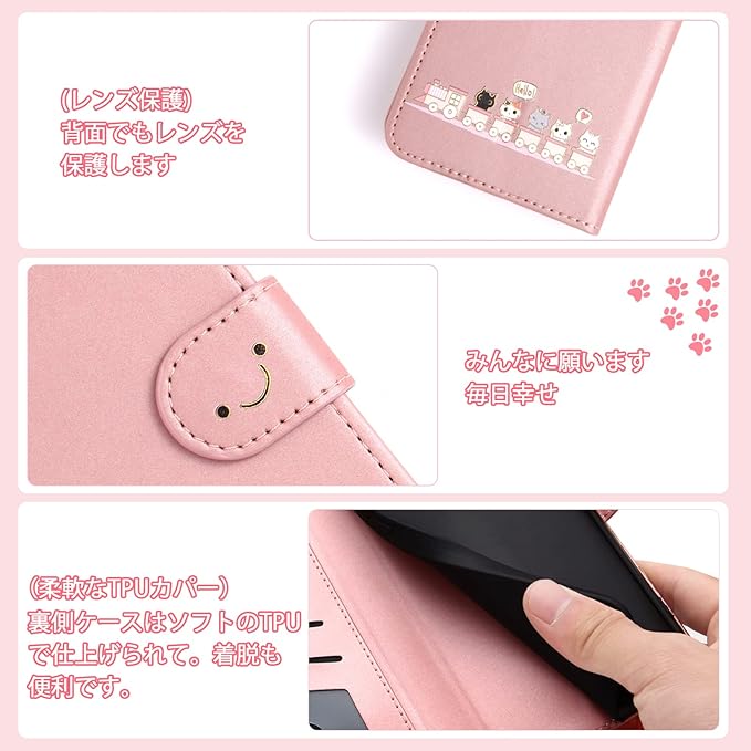 【細かい加工処理】iPhone 17 Pro スマホケース 手帳型は右側が開いたデザインで、笑顔の模様の開閉ボタンを採用しています,使い勝手がいい,どんなシーンやファッションにも合います。これはシンプルで可愛くて実用的なデザインです。