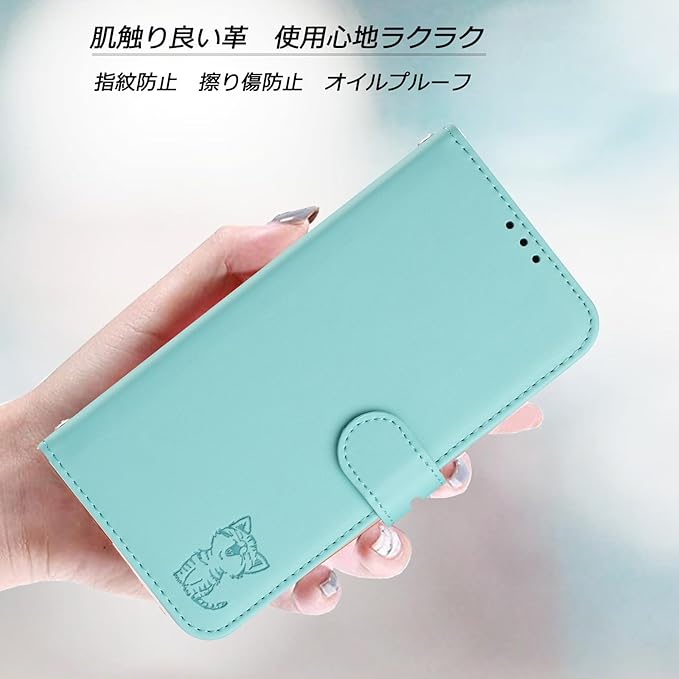 ❹【スマイル猫ちゃんのデザインと上質な素材】型押しの可愛い猫のモチーフと上品なレザーの組み合わせるケースであり、高級感ある色合いでちょっぴり大人なスマホケース。裏側ケースはソフトのtpuで仕上げられて、着脱も便利です。ストラップも付いて、日常性型にもっと便利になります。