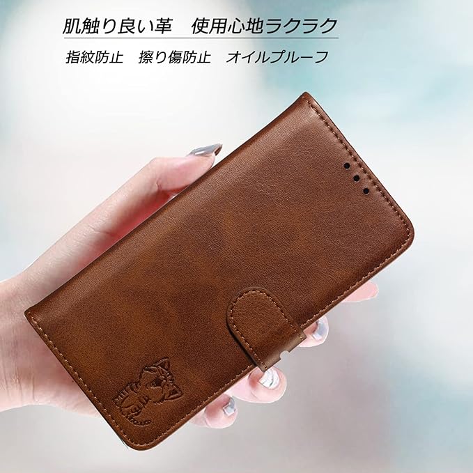 ❹【スマイル猫ちゃんのデザインと上質な素材】型押しの可愛い猫のモチーフと上品なレザーの組み合わせるケースであり、高級感ある色合いでちょっぴり大人なスマホケース。裏側ケースはソフトのtpuで仕上げられて、着脱も便利です。ストラップも付いて、日常性型にもっと便利になります。