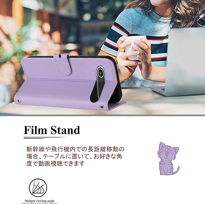 iPhone17Pro ケース 手帳型 iPhone17 Pro カバー あいふぉん手帳型 アイフォン 携帯ケース iPhonecase スマホケース スマホカバー 携帯カバー ストラップ付き カード収納 財布型 ベルトマグネット スタンド機能 かわいい 猫 耐衝撃 全面保護 (iPhone 17 Pro 対応)ライトパープル