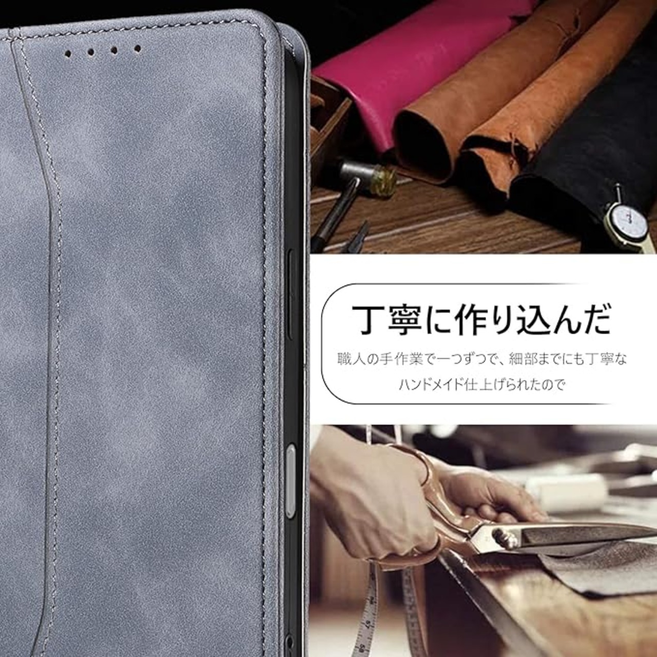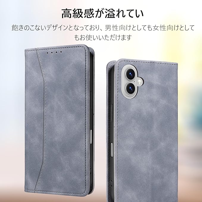KWATUNG iPhone 17 用 ケース 手帳型 アイフォン 17 用 ケース 手帳型 おしゃれ あいふおん17用 手帳型ケース 肌感レザー 内蔵マグネット 耐衝撃 iPhone 17用 スマホケース 手帳型 カード収納 スタンド機能 全面保護 アイホン17 用 6.3インチ グレー