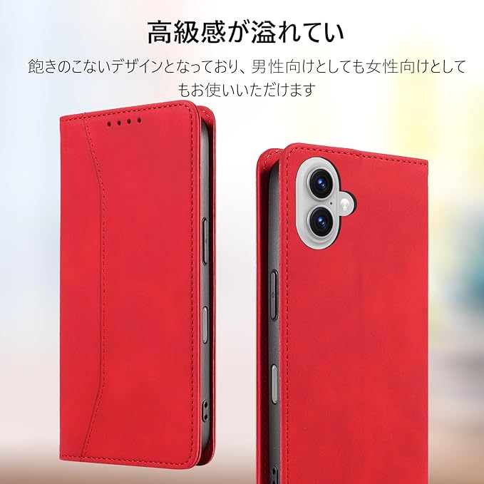 KWATUNG iPhone 17 用 ケース 手帳型 アイフォン 17 用 ケース 手帳型 おしゃれ あいふおん17用 手帳型ケース 肌感レザー 内蔵マグネット 耐衝撃 iPhone 17用 スマホケース 手帳型 カード収納 スタンド機能 全面保護 アイホン17 用 6.3インチ レッド