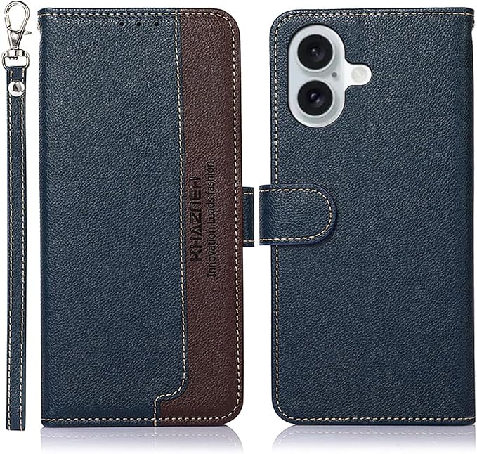 for iPhone 17 ケース 手帳型 For アイフォン 17 手帳 ケース 耐衝撃 ストラップ付き [RFIDブロッキング] カード収納 横置きスタンド機能 高級PUレザー マグネット開閉式 便利 人気 おしゃれ カードポケット 財布型携帯 ケース ブルー Rureu