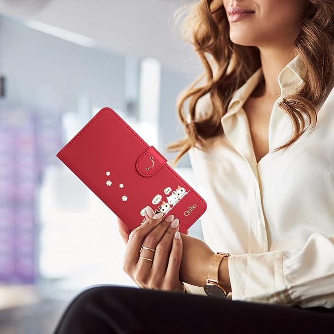 Qribo 適用の iPhone 17 ケース 手帳型 いphone17 手帳ケース シンプルなのに可愛いデザイン エンボス加工猫柄 うれしい気持ち 6.3インチ対応 アイフォン17ケース iphone17 カバー iPhone 17 スマホケース 薄型 防水 の耐久性 滑り防止 美しい 贈り物 友達 - レッド