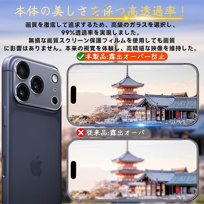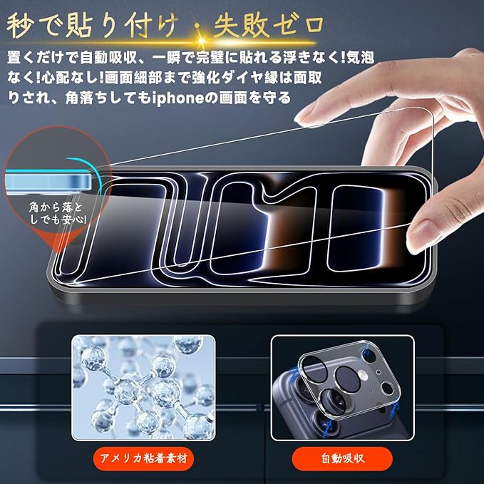 seninhi に適合する iPhone 17 Pro Max ガラスフィルム 用の apple iPhone 17Pro Max ガイド枠付き 指紋防止 【2* フィルム + 2* レンズ保護フィルム+ 1*ガイド枠付き+ 1*取り除き発泡板】国産旭硝子材質 に適合する iPhone17 ProMax 薄型 強化ガラス アイフォン 17Pro Max 保護フィルム 高光沢 いpほね 17 Pro Max 液晶 ケース 9H硬度 厚さ0.26mm超薄型 高透過率 気泡なし ラウンドエッジ加工 簡単貼り付け