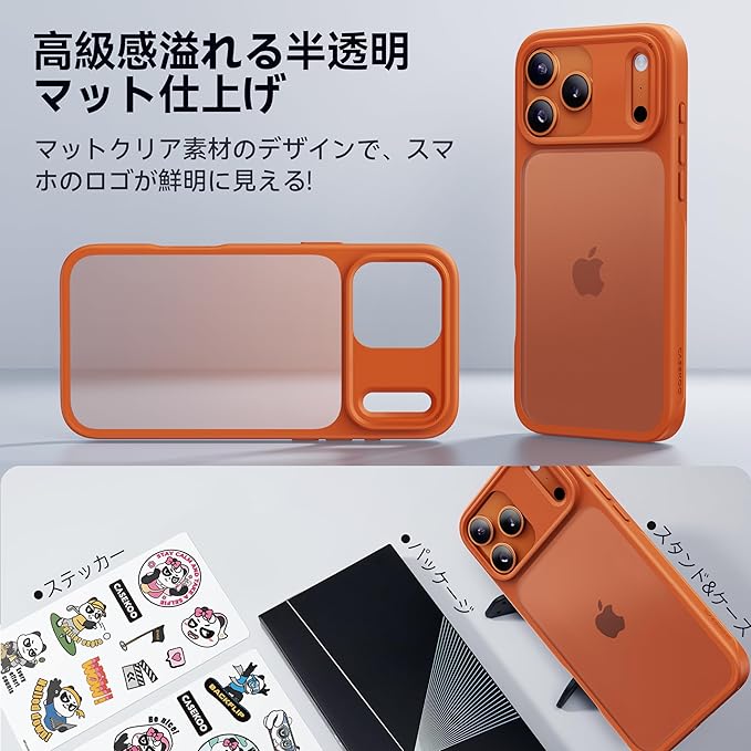 【米軍MIL規格・指紋防止】CASEKOO iPhone 17 Pro Max 用 ケース 耐衝撃 滑り止め 指紋防止 米軍MIL規格 マット仕上げ ストラップホール付き カバー ワイヤレス充電対応 アイフォン 17 プロマックス 用 6.9 インチ(オレンジ)