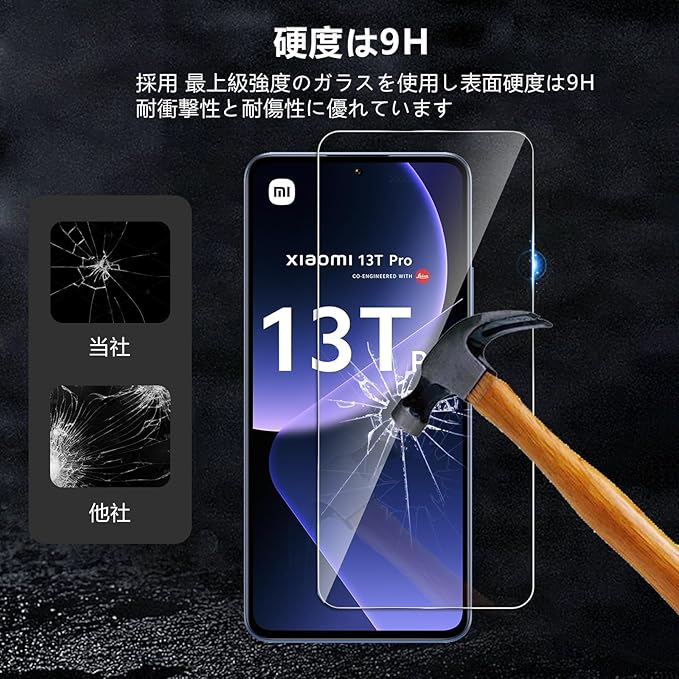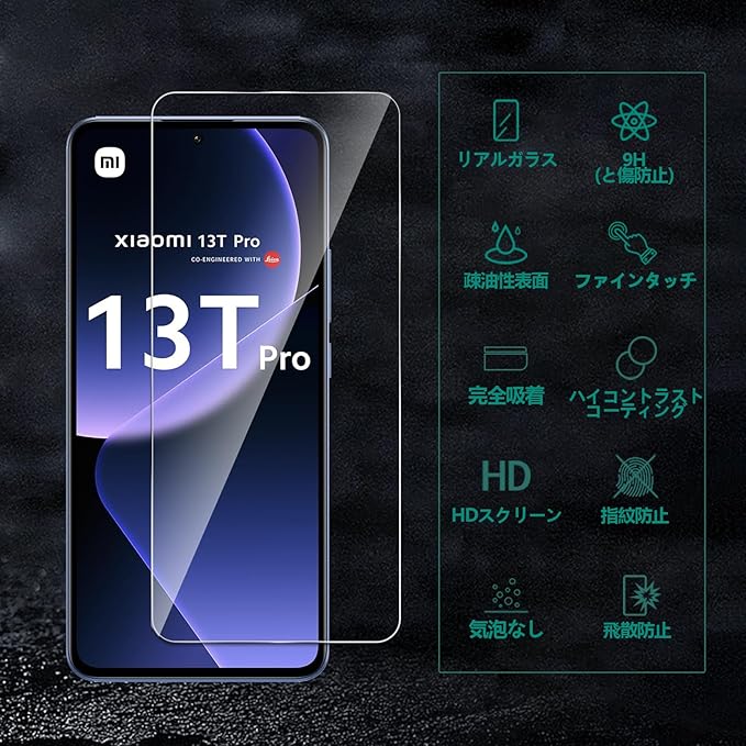 【2枚セット】Xiaomi 13T/13TPro ガラスフィルム Xiaomi13T Pro 保護フィルム 強化ガラス 旭硝子素材製 硬度9H 液晶保護ガラス フィルム タッチ感滑らか 2.5D加工 耐衝撃 自?吸着 気泡レス 指紋防止 撥水撥油 高透過率 超薄型 高応答性 a