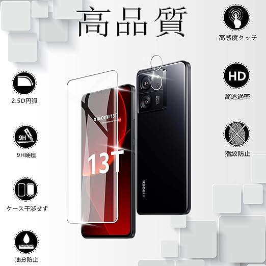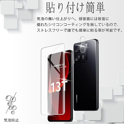 【対応機種】:Xiaomi 13T / Xiaomi 13T Pro 2枚強化ガラスフィルム+ 2枚カメラ保護フィルム
