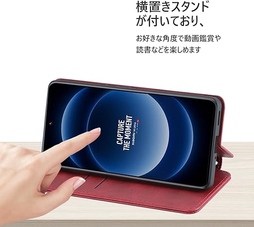 Xiaomi 14 Ultra ケース 手帳型 wangChuan シャオミ 14 ウルトラ スマホケース レザー カード収納 内蔵マグネット式(携帯ストラップ付き)レッド a