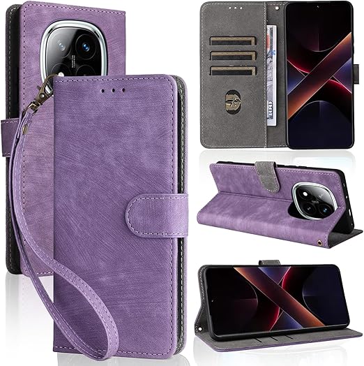 Redmi Note Pro 14 5G/Xiaomi POCO X7 用 ケース 手帳型 カバー 財布型 【NOUKAJU】 カードポケット付き 高級 PUレザー 手触りが良い 落下防止 衝撃吸収 耐摩擦 全面保護 耐磁性RFID機能 マグネット式 カード収納 スタンド機能 軽量 薄型 ストラップ付き スマホケース (パープル) a