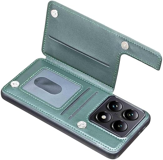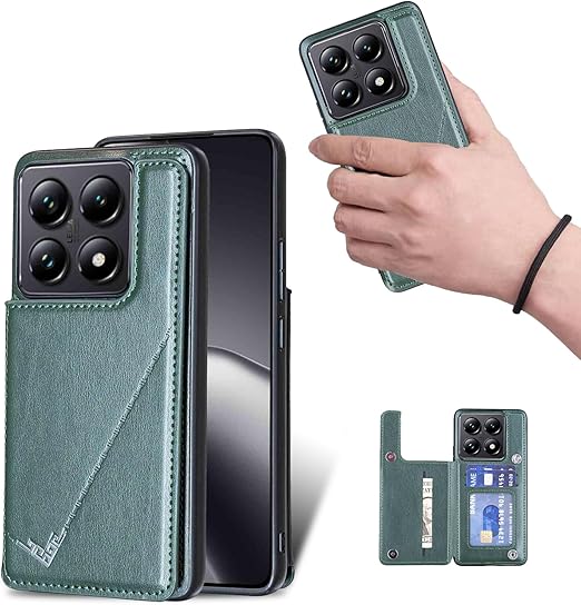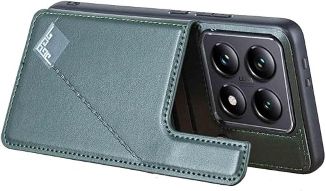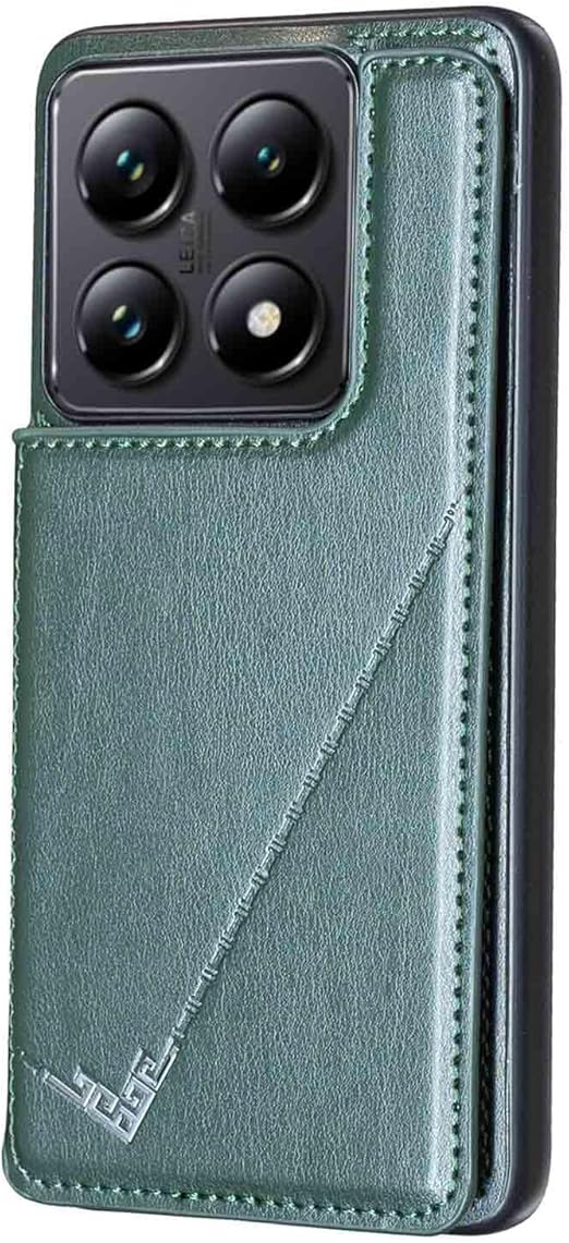 for Xiaomi 14T ケース スタンド機能 ケース ICカード収納 カード 背面カード収納 左と右の電話ケースを反転、シンプルなレトロなファッション、防水と防汚電話ホルダー、多機能財布収納付き、PUレザー、TPUソフトインナー (グリーン) a