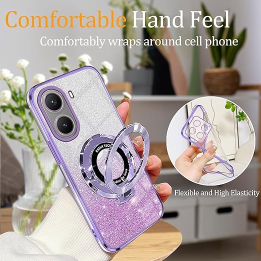 Wousunly ケース互換性がありますXiaomi Poco X7 Pro ケースきらきら 薄型 軽量Xiaomi Redmi Turbo 4カバー リング360°回転車載ホル 2in1キラキラ全面保護 (ヴィオラ) a