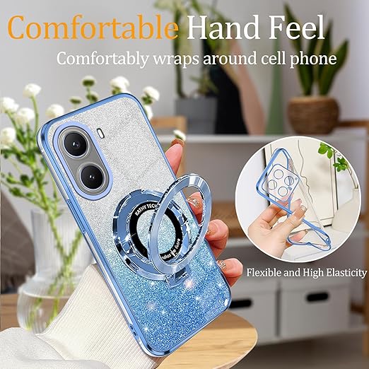 Wousunly ケース互換性がありますXiaomi Poco X7 Pro ケースきらきら 薄型 軽量Xiaomi Poco X7 Proカバー リング360°回転車載ホル 2in1キラキラ全面保護 (ブルー) a