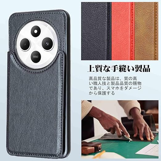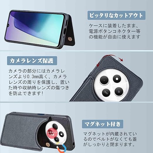 【Aqier】For XIAOMI Redmi 14C 用 ケース 背面手帳型 軽い薄い 純色 レザーケース(ブラック)シャオミ レッドミー14c ケースカード入れ 片手操作 バック?カバー シャオミredmi14c 黒 a