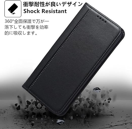 【機能性1:高品質PUレザー】外側のカバーには手触りがとても良い高品質の合成レザーを採用します。内側のスマホホルダーは柔軟なTPU素材を採用したソフトケースとなります。汚れにくくて指紋防止の特徴を持っております。耐衝撃の二重構造で落下の衝撃をうまく吸収します、本体をしっかりと守ります。