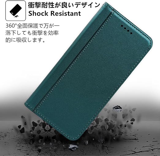 【機能性1:高品質PUレザー】外側のカバーには手触りがとても良い高品質の合成レザーを採用します。内側のスマホホルダーは柔軟なTPU素材を採用したソフトケースとなります。汚れにくくて指紋防止の特徴を持っております。耐衝撃の二重構造で落下の衝撃をうまく吸収します、本体をしっかりと守ります。