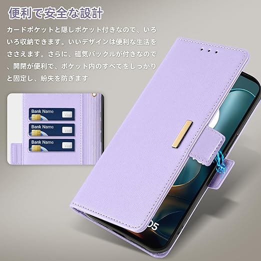 RanBluu コンパチブル Motorola Moto G05 ケース 手帳型 モトローラ g05 用 高級PU レザーケース カバー スマホケース 財布型 カード収納 マグネット カメラ保護 横置きスタンド機能 ストラップ付き 耐摩擦 耐衝撃 全面保護(MOTO G05 対応 パープル) a