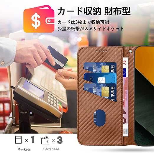 Gedurya M7 Pro 5G 用 ケース 手帳型 スマホケース 炭素繊維ブレイドスタイル 肌触り良い 携帯カバー マグネット開閉式 スタンド機能 軽量 薄型 指紋防止 人気 上質 全面保護 財布型 便利 - ブラウン a