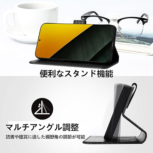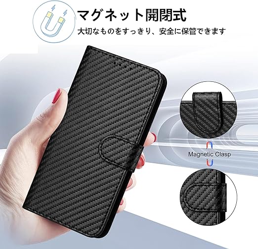 【上質な素材】このケースの外装は高品質のPU素材とカーボンファイバーの質感で作られており、手に馴染み、傷防止、指紋防止、優れた熱と衝撃吸収性を持っています。内側はソフトなTPU素材で携帯電話を保護し、着脱も簡単です。また、ケースは携帯電話