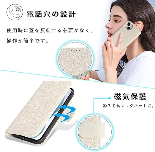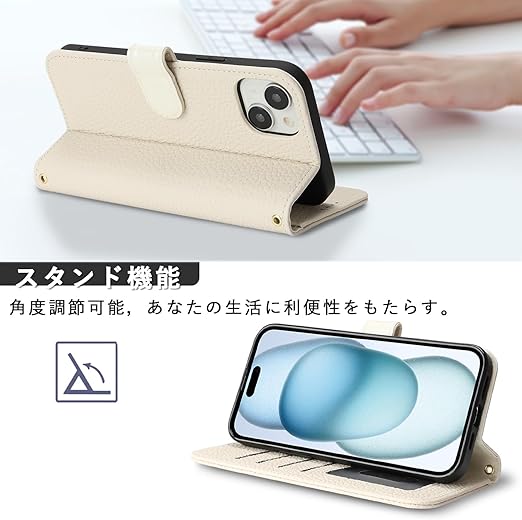 DEYHU 対応 iPhone 15 ケース 手帳型 カード収納 スタンド機能 アイフォン15 ケース 本革 大容量 耐衝撃 カード収納 iPhone15 ケース 手帳型 iphone 15 レザー カバー ミルクホワイトです a