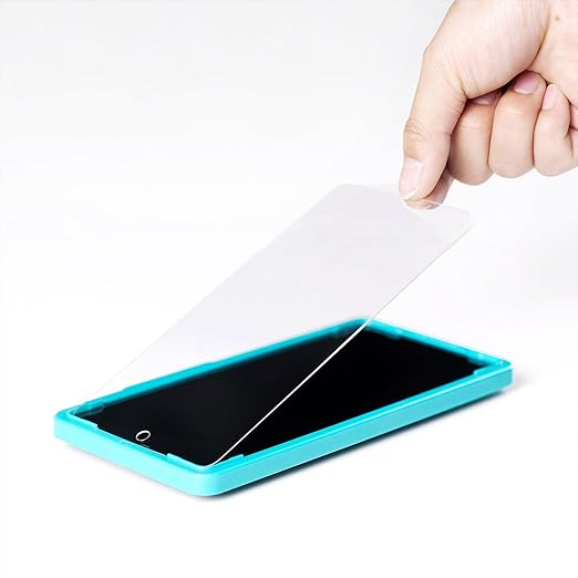 簡単貼り付け&気泡なし:初めての方でも簡単に貼り付けられるよう、付属の専用貼り付けガイド枠を使って、誰でも簡単にガラスフィルムを