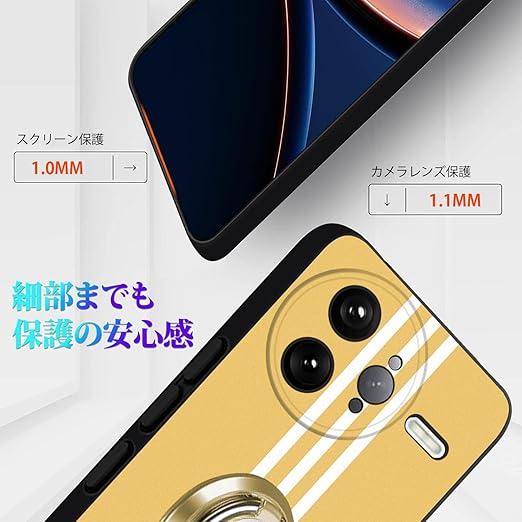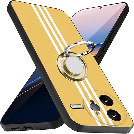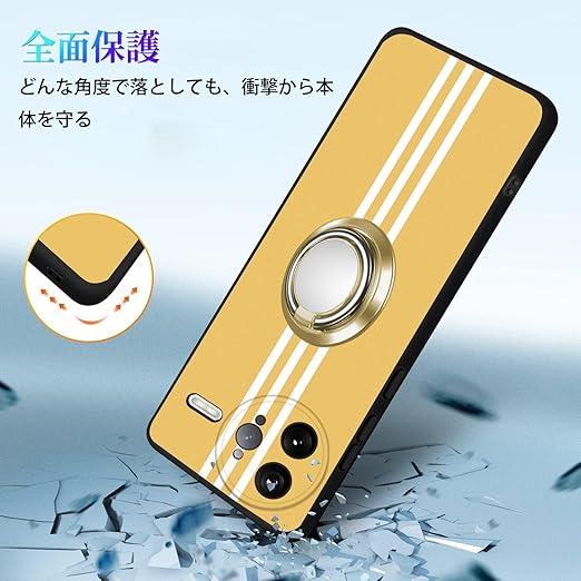 Xiaomi POCO F7 Ultra ケース リング 耐衝撃 TPU 指紋防止 シリコン 車載ホルダー対応 360°回転 ストラップホール付き 滑り止め 落下防止 全面保護カバー(イエロー) a