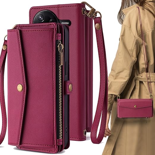 POCO F7 Pro ケース 手帳型 POCOF7Pro ショルダーケース XiaomiPocoF7pro ストラップケース 通用 SIMフリー シャオミ POCO F7 プロ カバー Xiaomi poco F7pro 携帯カバー 耐衝撃 カード入れ 適用 case Cobeimisr ショルダー バッグ ストラップ 斜め掛け カード スマホケース ワインレッド a
