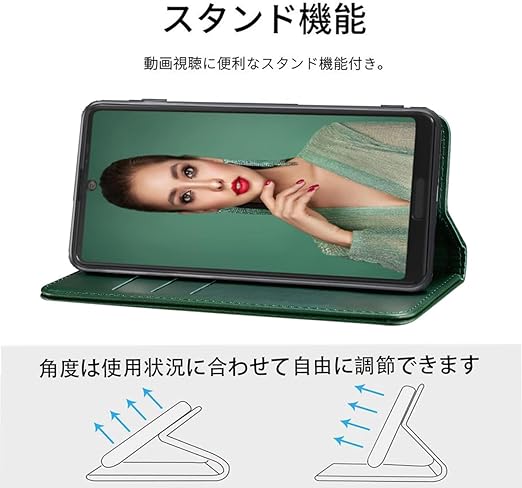 Xperia 10 VII ケース 手帳型 高質PUレザー Xperia 10 VII カバー ケース 耐衝撃 内蔵マグネット開閉式 エクスペリア 10 VII ケース ベルトなし スマホケース おしゃれ カードポケット スタンド機能 便利 スプラット同梱 携帯ケース (グリーン) a