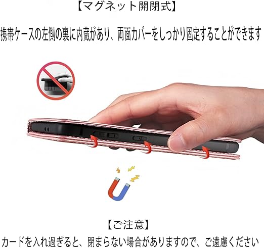 【多機能】:①[スタンド機能が付いて]:横向いて斜めに立てて、お好きな角度を調整できます。②[360度保護]:内蔵マグレット機能付きの手帳型カバーで、大切なディスプレイへのキズ、汚れ、衝撃も保護できます。③[マグネット開閉式]:携帯ケースの左側の裏に内蔵があり、両面
