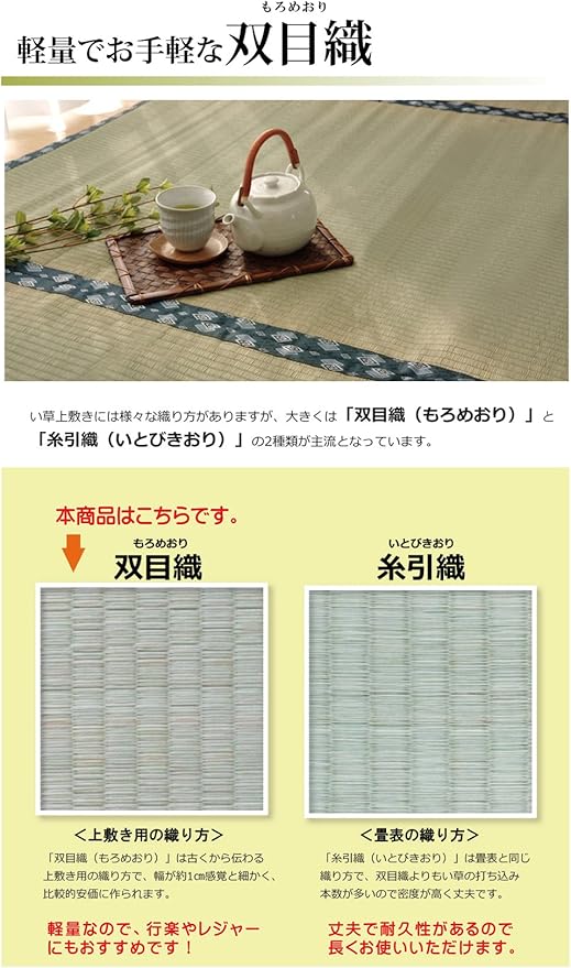 素材:表地=い草(九州産) ※双目織 ヘリ=ポリプロピレン、ポリエチレン
