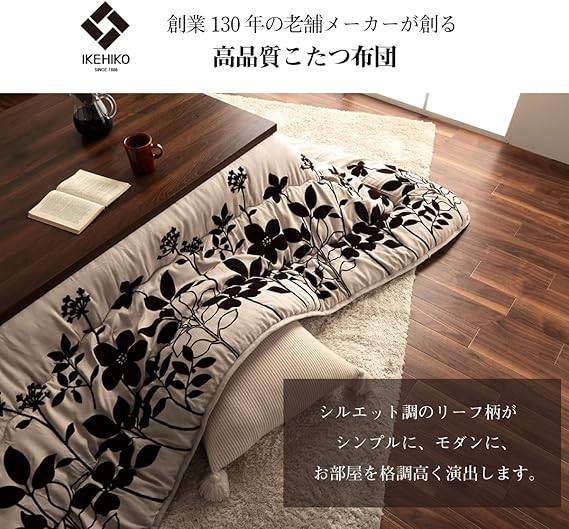 イケヒコ こたつ布団 正方形 シエナ 約205×205cm ベージュ モダン リーフ 厚掛け 日本製 #5173319