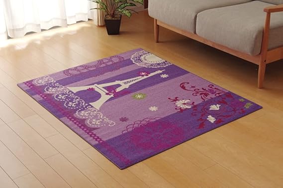 イケヒコ デスクカーペット 女の子 エッフェル柄 ジェンヌ ツー パープル 約110×133cm #4720829
