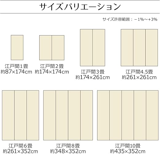 【仕様】サイズ:江戸間2畳(約174×174cm) 、原産国:日本製(純国産)、素材:ポリプロピレン100%。ポリプロピレンとはプラスチックのひとつで軽くて傷がつきにくい丈夫な素材です。細いストロー状のポリプロピレンを、い草花ござと同じ要領で織り上げた汚れに強いカーペットです。