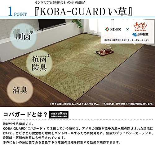 イケヒコ い草 ラグ カーペット 花ござ 日本製 小林製薬 持続性抗菌剤 KOBA-GUARD 制菌 抗菌防臭 ラウム ベージュ 江戸間4.5畳 約261×261cm #4136604