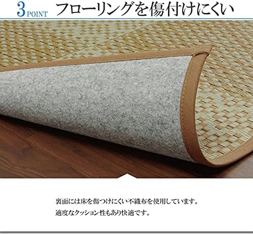 素材:表地=い草(九州産) ※紋織 裏地=ポリエステル100%【滑り止め加工不織布3mm】 ヘリ=麻15% 綿85%