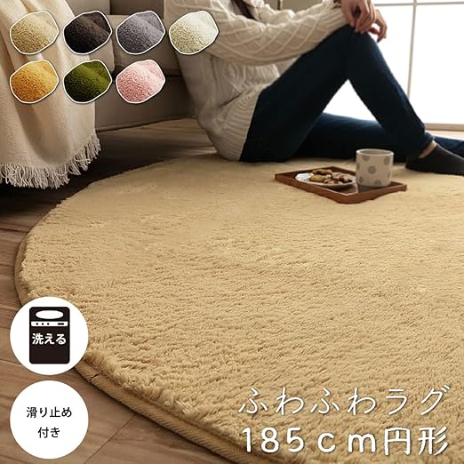 イケヒコ・コーポレーション ラグ カーペット マット 円形 フィリップ2丸 畳み ブラウン 約185cm丸 洗濯機対応 フィラメント 無地 クッション 通年 オールシーズン #1280600060603