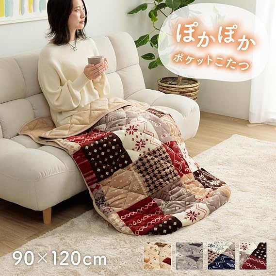【商品紹介】おひとり様用ポケットこたつ布団です。表地にはふんわりやわらかなフランネル素材を使用しています。ソファに座る時や、デスクワークで足先、膝が冷たい時にさっと使えてあたたかく、電気代も節約できて便利です。持ち運びも簡単なので、アウトドアなど外でもご使用できます。