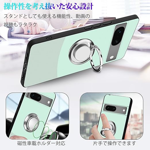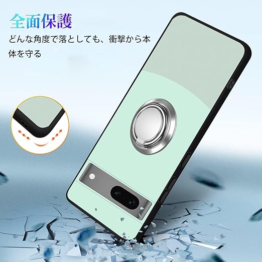 Google Pixel 7A ケースリング 耐衝撃 Pixel 8a カバー TPU 指紋防止 シリコン 車載ホルダー対応 360°回転 ストラップホール付き 滑り止め 落下防止 全面保護カバー(ライトシアン)